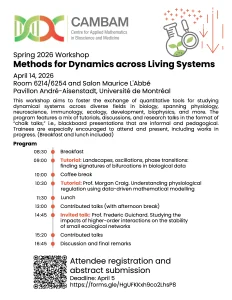 This workshop will focus on quantitative approaches to studying dynamical systems in biology. Researchers from various fields, especially trainees, are encouraged to attend or present their work.